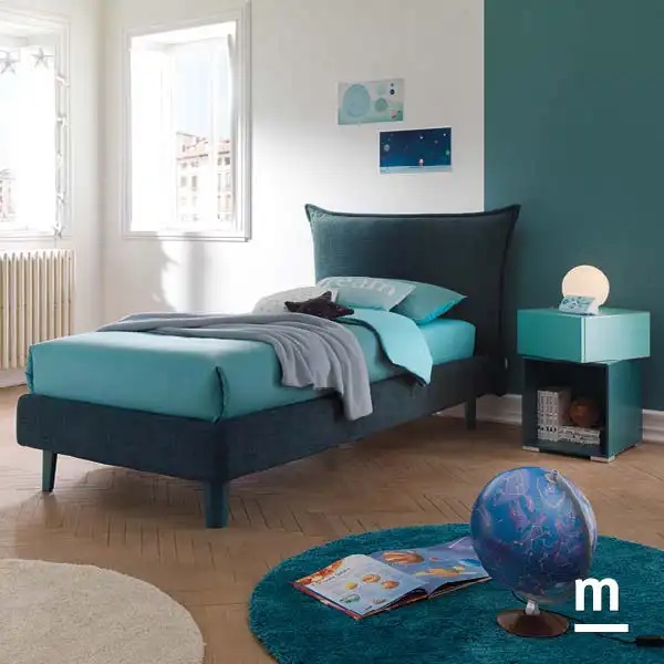 Каркас кровати Medium с мягкой обивкой и изголовьем Hugh олицетворяет гармонию, энергию и позитив, которые исходят от хорошего сна. В этой версии он покрыт темно-синей тканью. Ткань, полностью съемная и допускающая машинную стирку при 30°, представляет собой прочный и устойчивый к катышкам обивочный полиэстер.